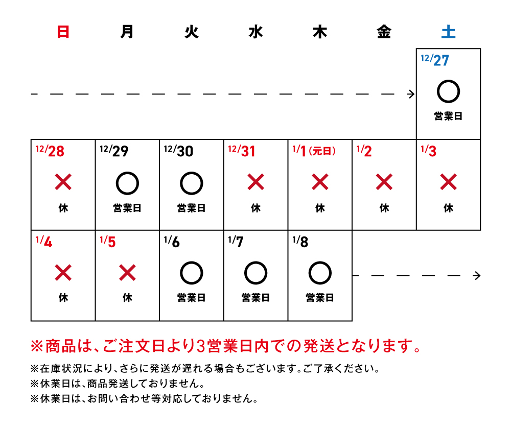 ※休業日は、商品発送しておりません。